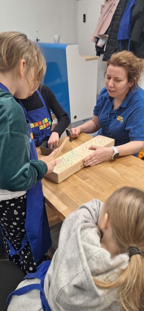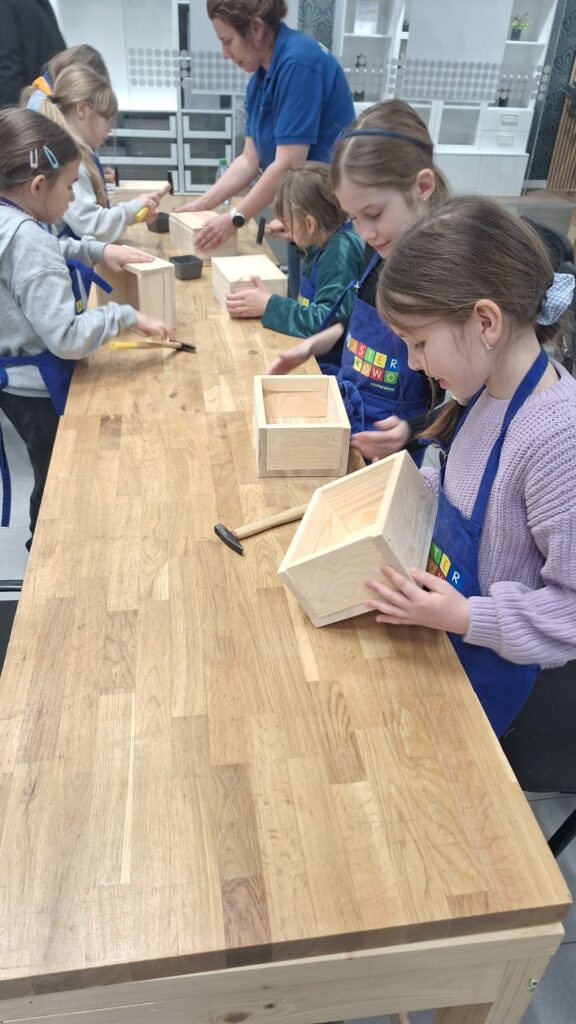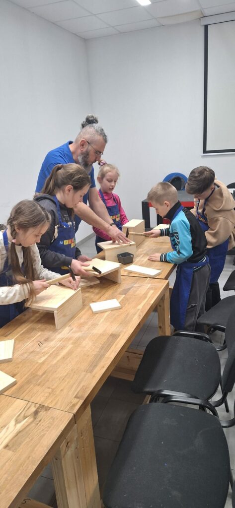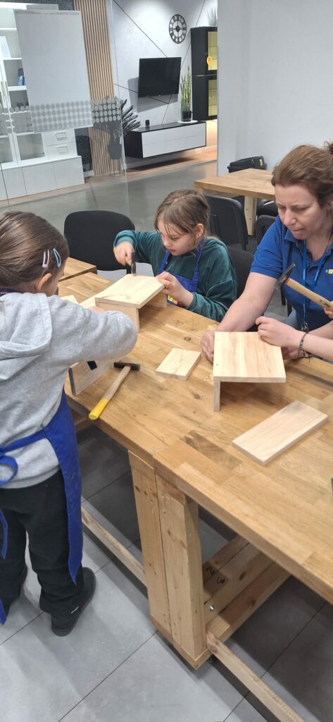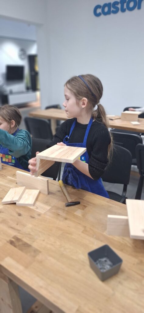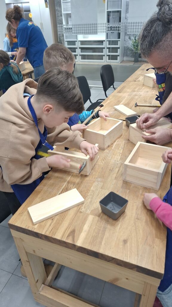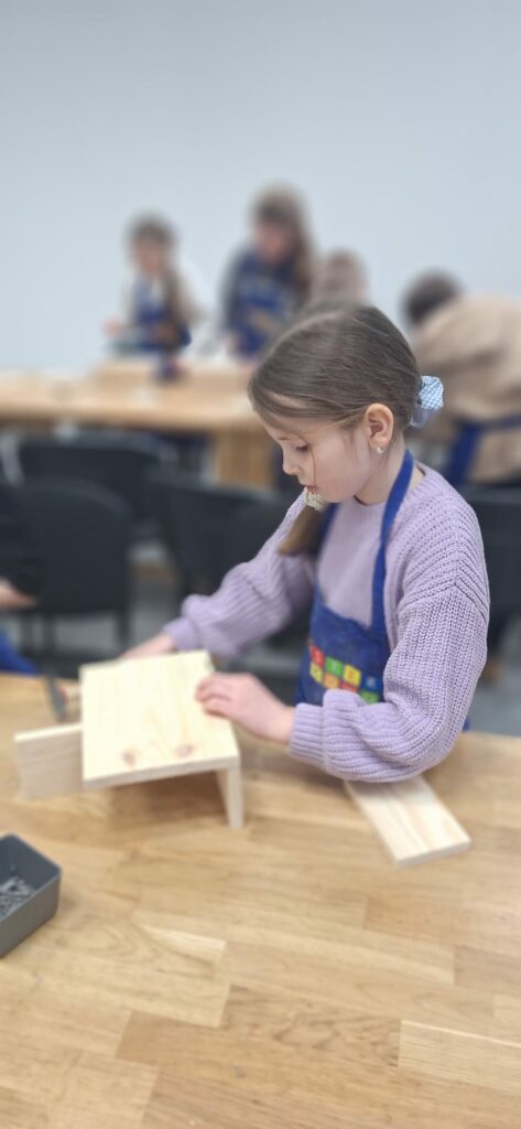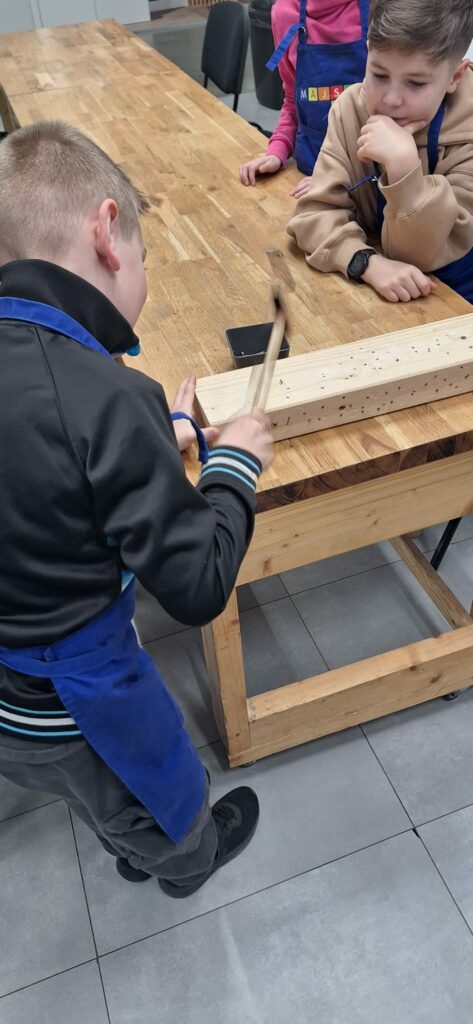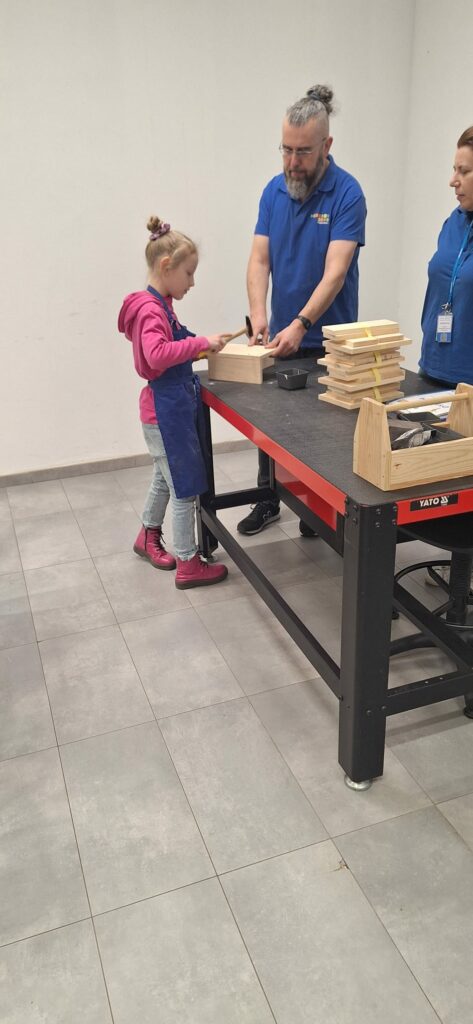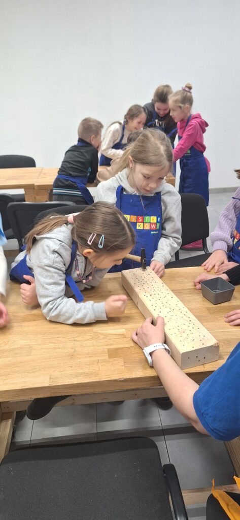 Podczas zajęć dzieci samodzielnie wykonały drewniane skrzynki, ucząc się przy tym obsługi młotka, gwoździ i innych narzędzi. Każde dziecko z ogromnym zaangażowaniem tworzyło swoją pracę, a radość z efektów była ogromna!