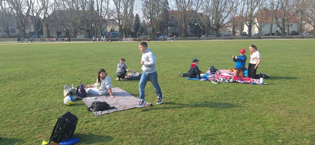 Na miejscu uczniowie urządzili wiosenny piknik, grali w piłkę, odpoczywali na trawie i – oczywiście – zjedli pyszne lody. Po krótkim odpoczynku wyruszyli do Parku Kasprowicza, gdzie odkrywali jego tajemnice i poznawali ciekawostki z historii Szczecina.
