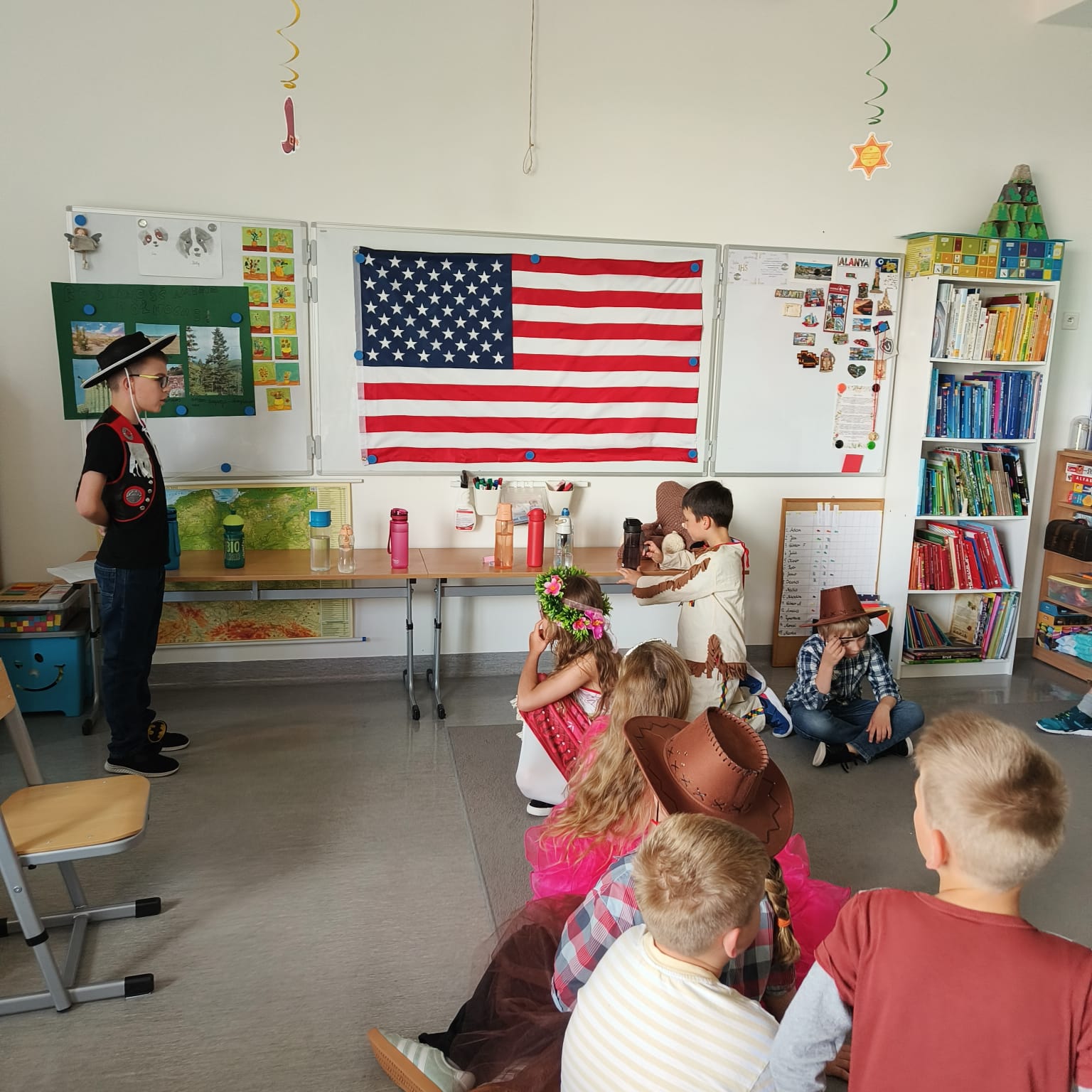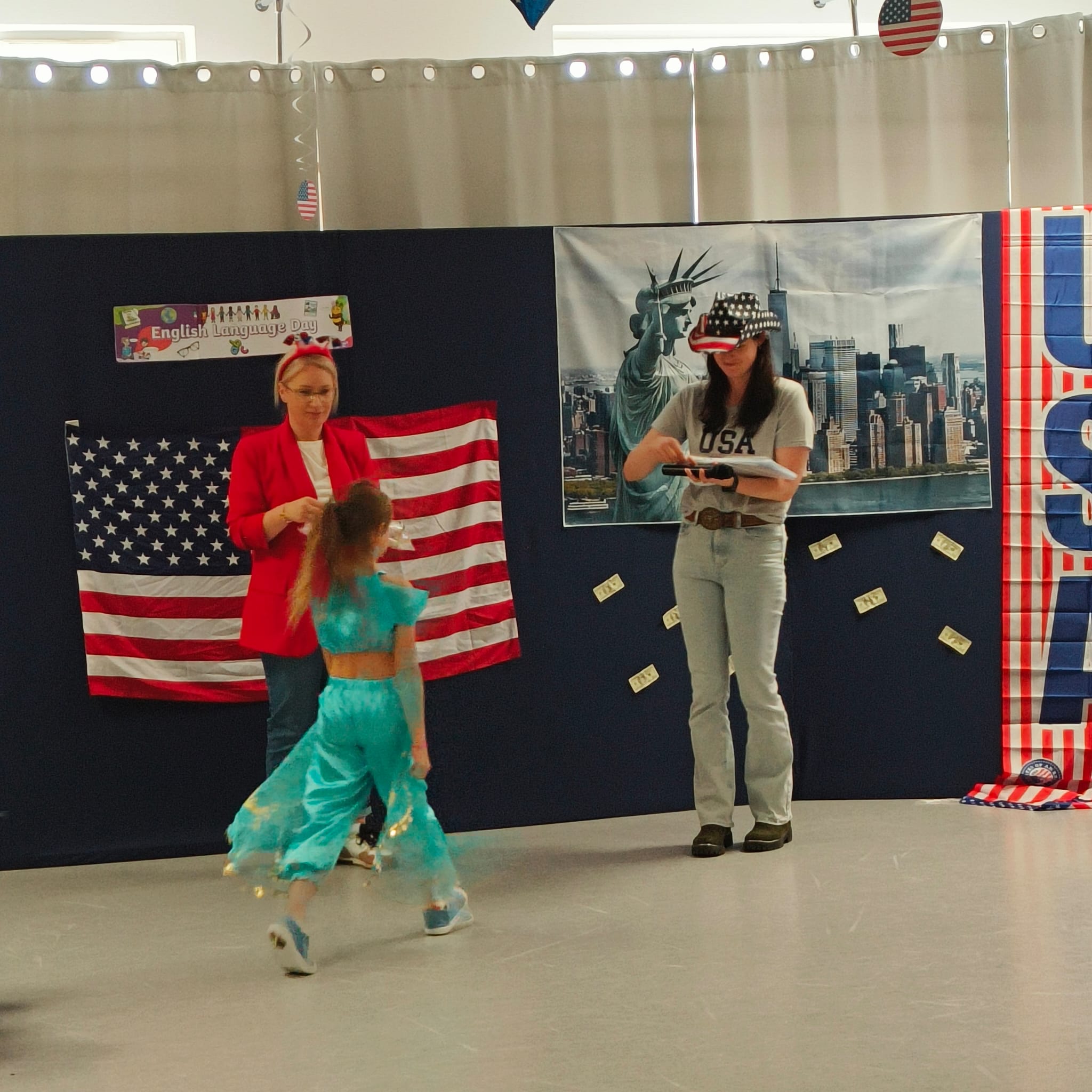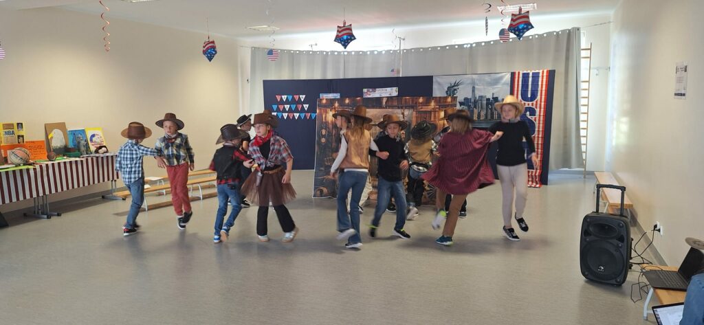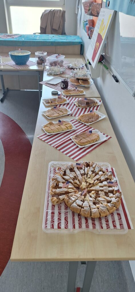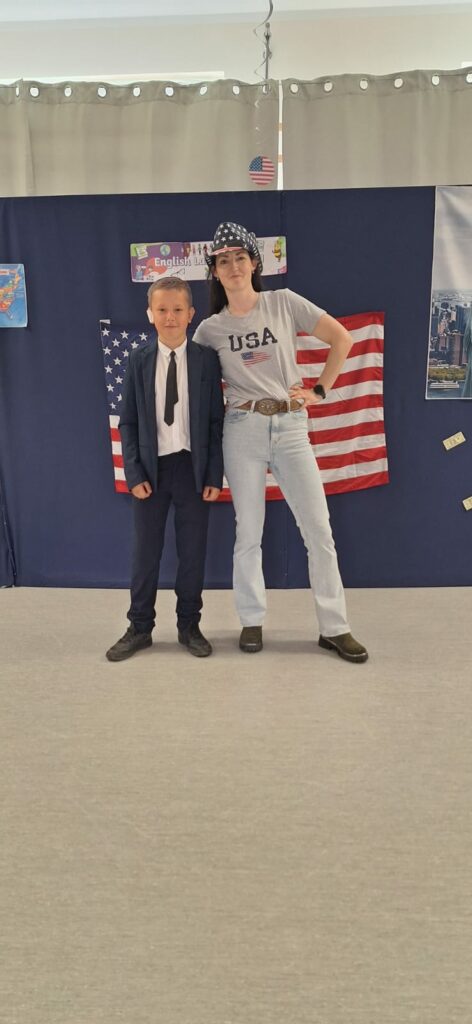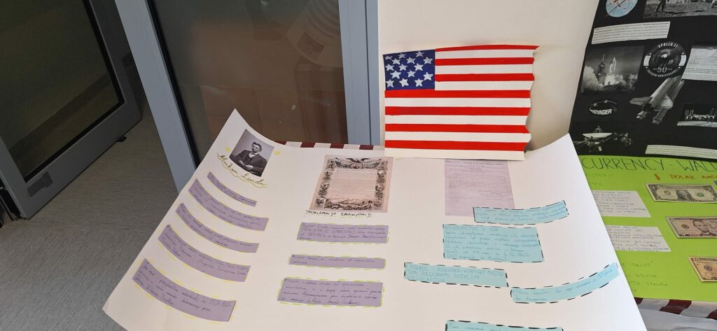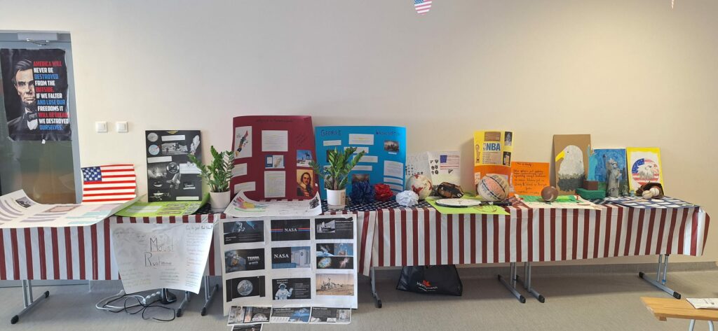 Cała szkoła zamieniła się w prawdziwe USA – na korytarzach można było zobaczyć amerykańskie flagi, plakaty i dekoracje, a każda klasa przygotowała inny temat związany z kulturą, historią lub tradycjami USA.