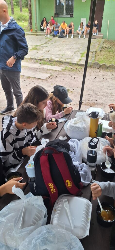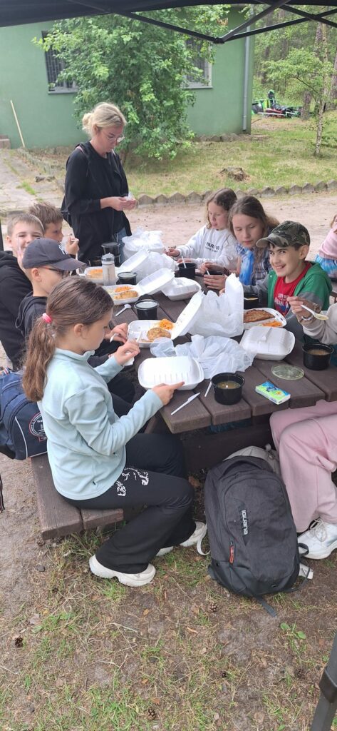 Po zakończeniu zwiedzania uczestnicy wycieczki zjedli wspólny obiad na świeżym powietrzu, w leśnych warunkach, co było doskonałą okazją do odpoczynku i integracji.