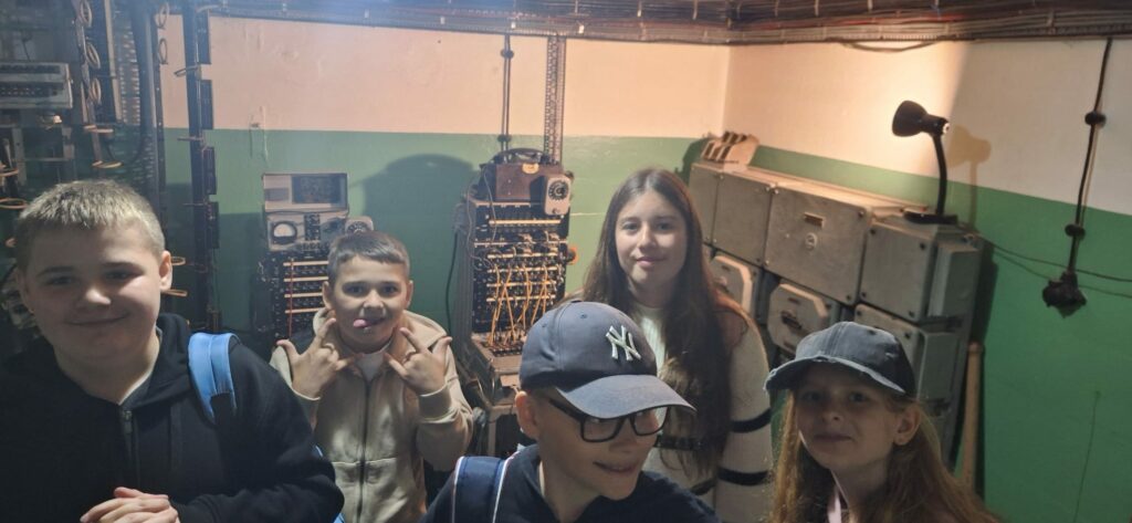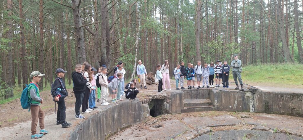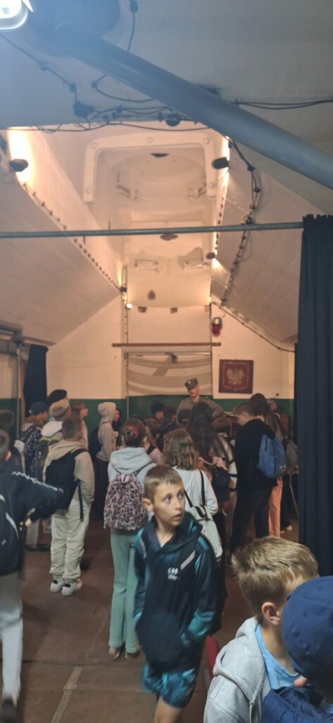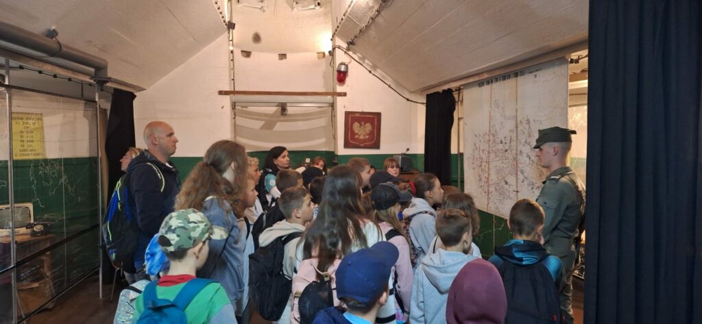 Pod opieką nauczycieli i przewodnika uczniowie mieli okazję zejść do podziemnych korytarzy, gdzie wysłuchali interesujących opowieści o życiu żołnierzy, tajemnicach fortyfikacji i wydarzeniach z czasów wojny. Przewodnik w niezwykle przystępny sposób przybliżył dzieciom trudne tematy historyczne, a uczniowie z zaciekawieniem zadawali pytania i oglądali eksponaty.
