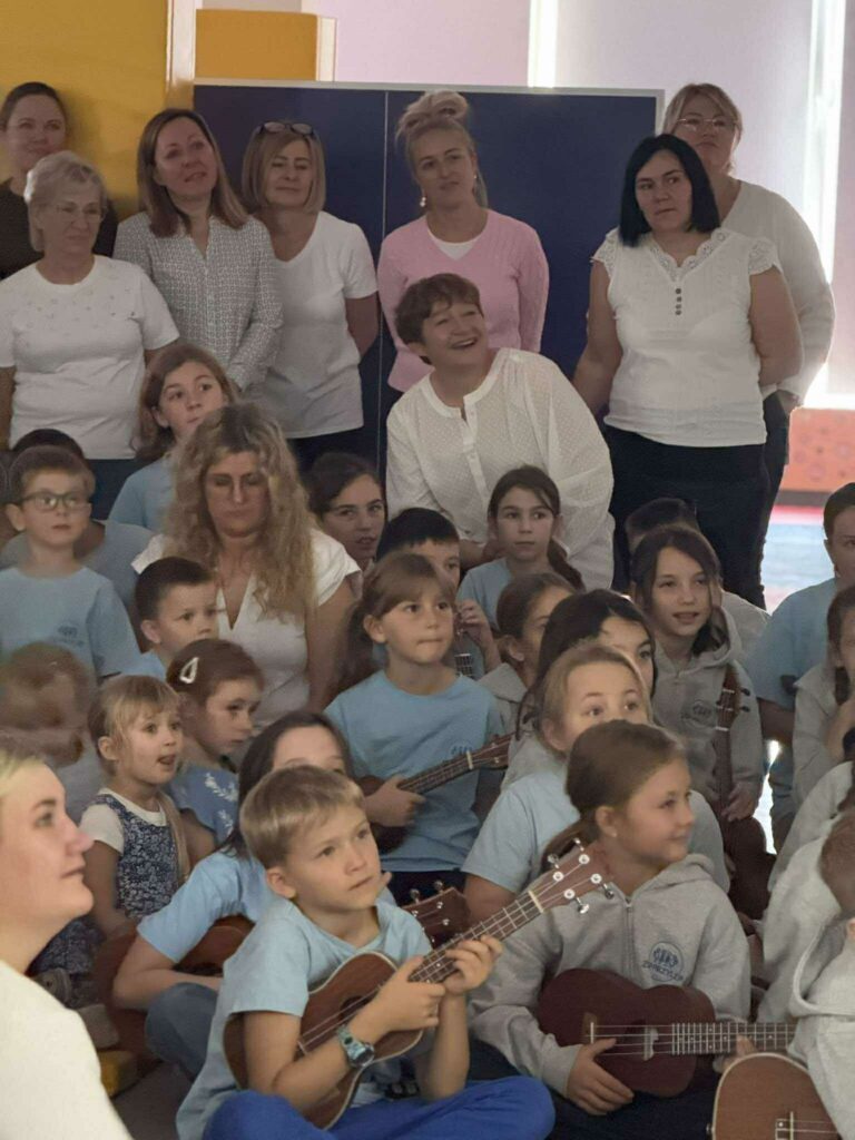 Były upominki, śpiewy, występy uczniów, a także niezwykle wzruszający moment, gdy dzieci zagrały „Sto lat” na ukulele.