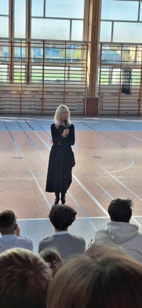 7 listopada uczniowie klasy 5 i 6 naszej szkoły pojechali autokarem do naszej zaprzyjaźnionej szkoły w Przecławiu, aby tam, wraz z przecławskimi rówieśnikami uczestniczyć w spotkaniu z Sędzia Anną Marią Wesołowską. Tematem spotkania były „Współczesne zagrożenia bezpieczeństwa dzieci i młodzieży”, a także zagadnienia dotyczące prawa i zapobiegania przemocy. Spotkanie odbyło się na sali gimnastycznej, na której, mimo ogromnej ilości uczniów, panowała cisza, skupienie, przerywane zadawanymi pytaniami dotyczącymi fascynujących opowieści z życia wziętych, które przytaczała Pani Sędzia.