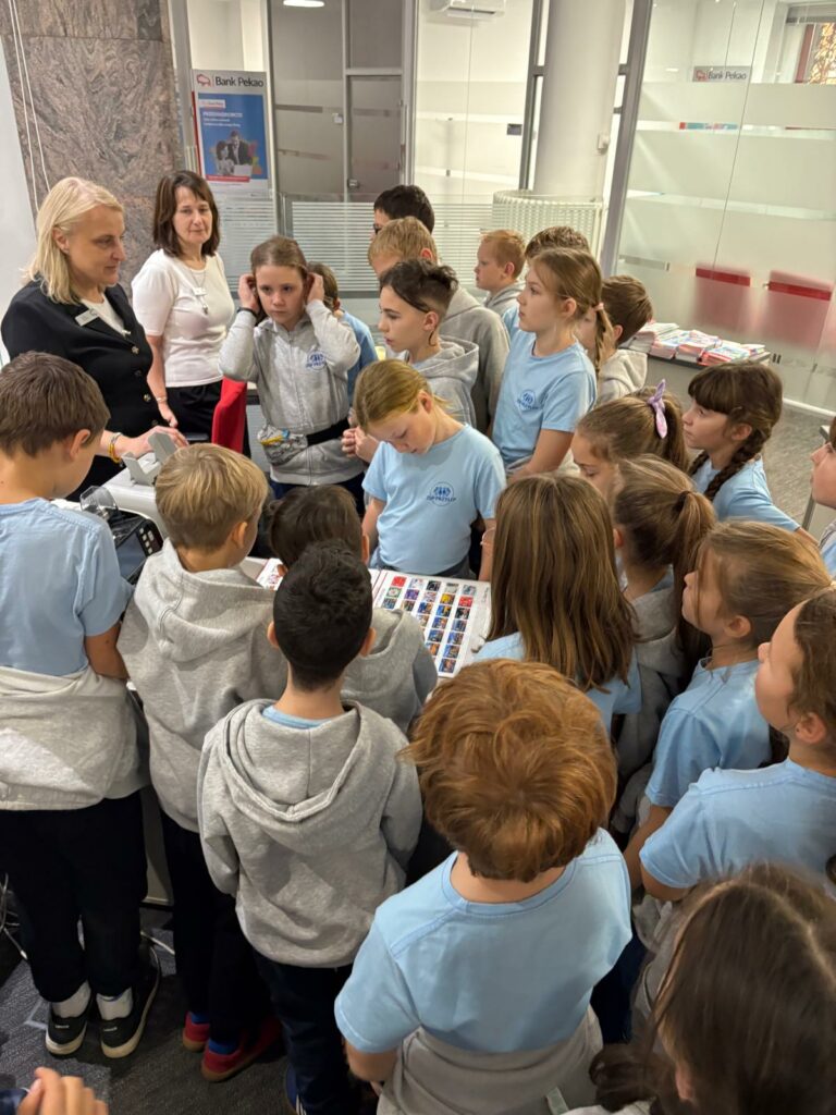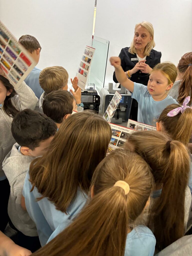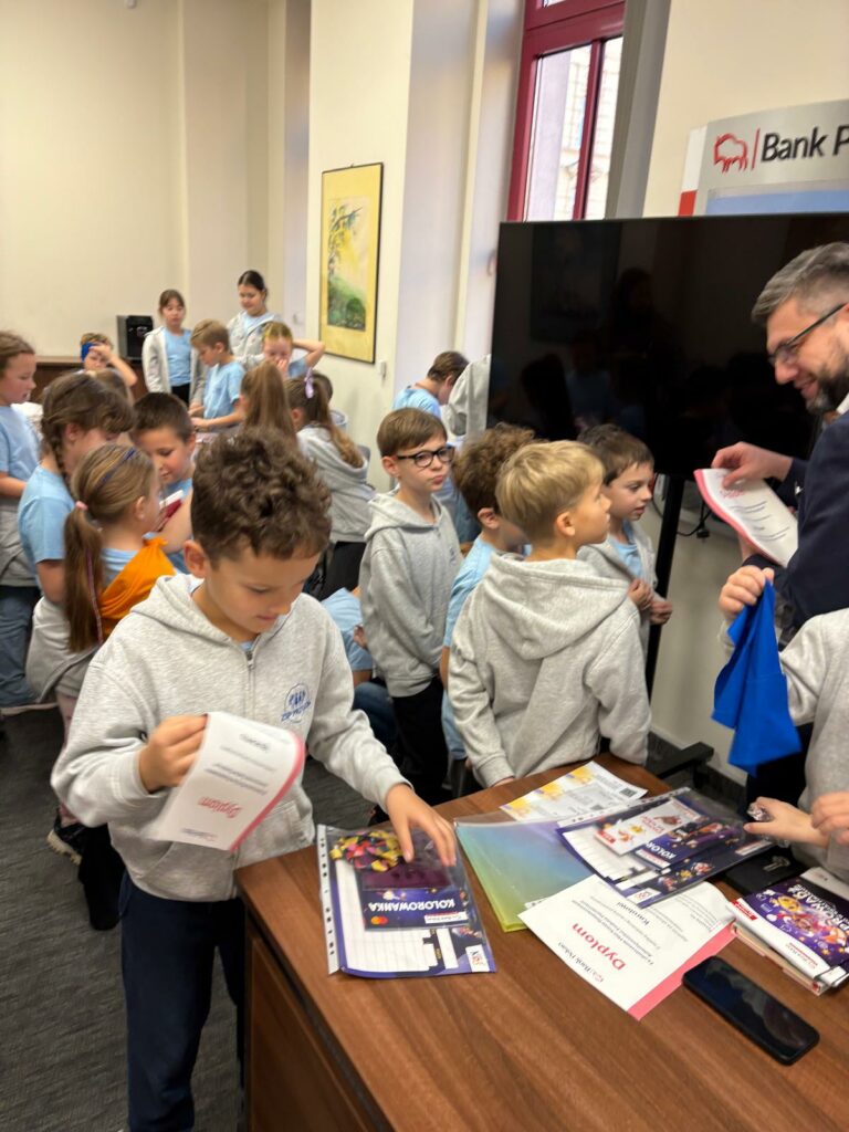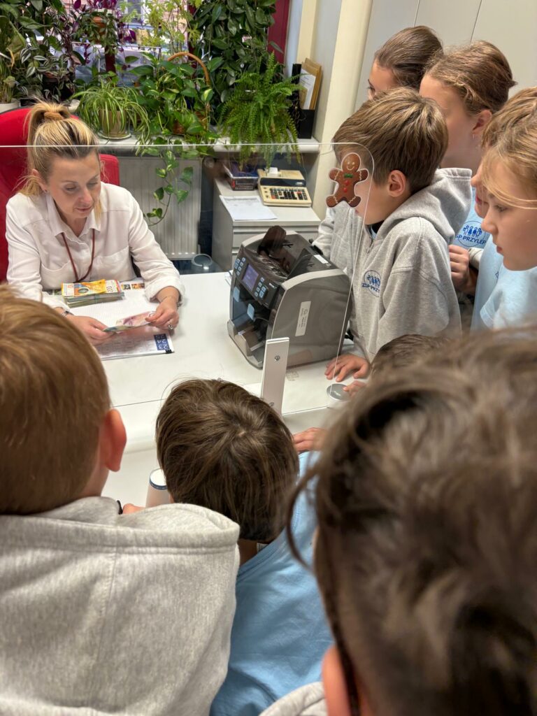 Uczniowie klas 4b i 2a wzięli udział w niezwykle ciekawych zajęciach edukacyjnych, które odbyły się w jednym z oddziałów banku PKO SA. Celem wizyty było poznanie funkcjonowania banku, zawodów związanych z bankowością oraz zdobycie praktycznej wiedzy na temat pieniędzy.