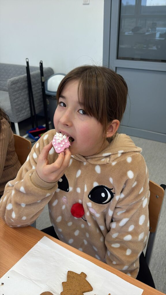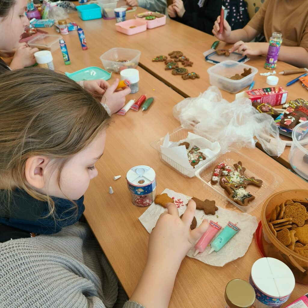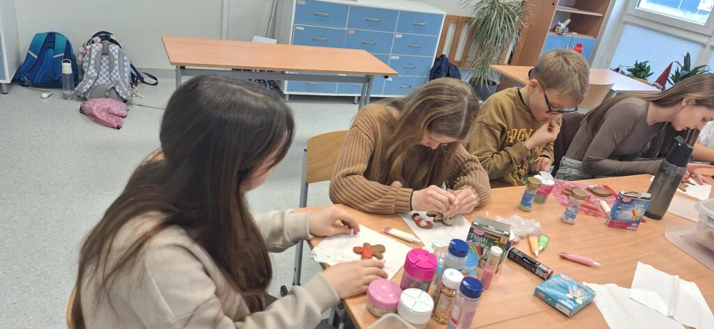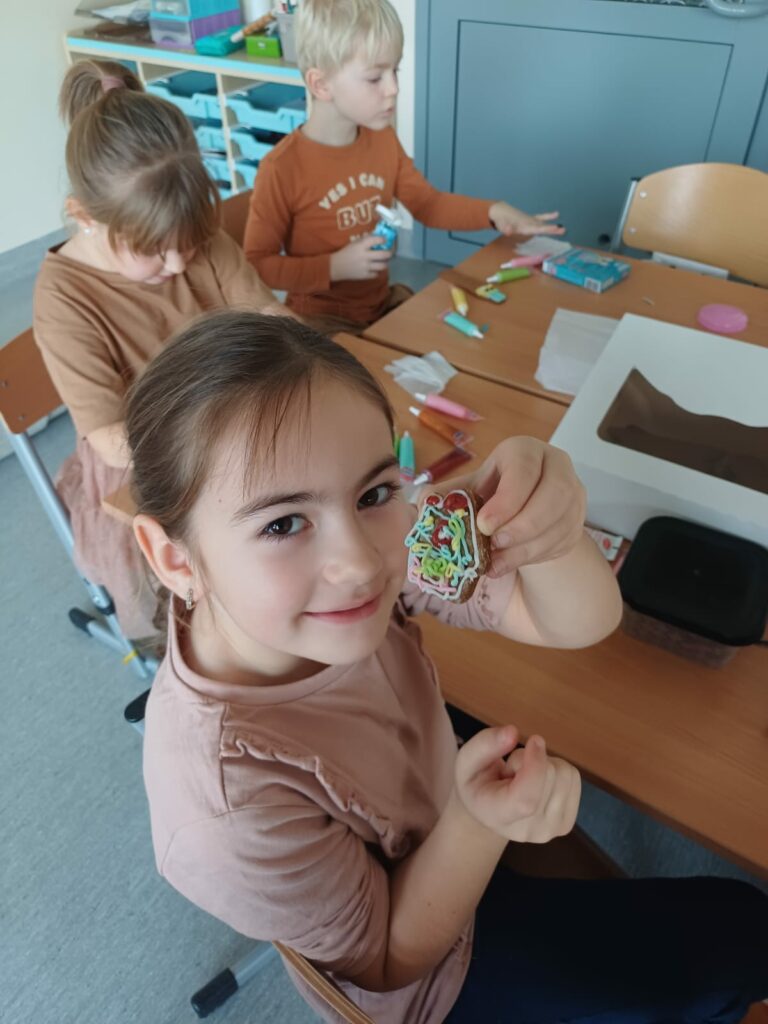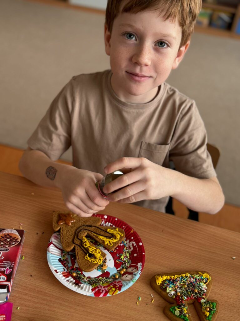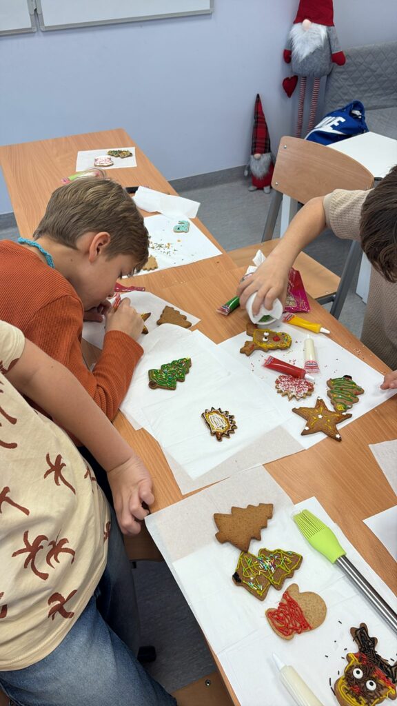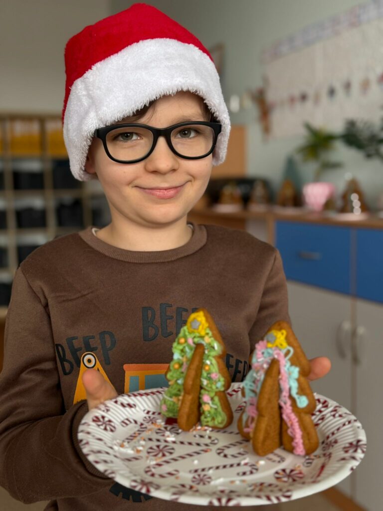 Tego dnia uczniowie mieli okazję własnoręcznie dekorować pierniki. Kolorowe lukry, posypki i fantazyjne wzory sprawiły, że każdy wypiek stał się małym dziełem sztuki. W salach rozbrzmiewał śmiech i rozmowy pełne entuzjazmu. Cała szkoła pachniała słodkością, a wspólne dekorowanie pierników stało się okazją do integracji i rozwijania kreatywności. Dzień Brązowy pokazał, że nauka i zabawa mogą iść w parze. To był czas pełen uśmiechu, zapachu korzennych przypraw i wspólnego tworzenia – idealny przykład na to, jak kolorowy tydzień buduje szkolną wspólnotę.