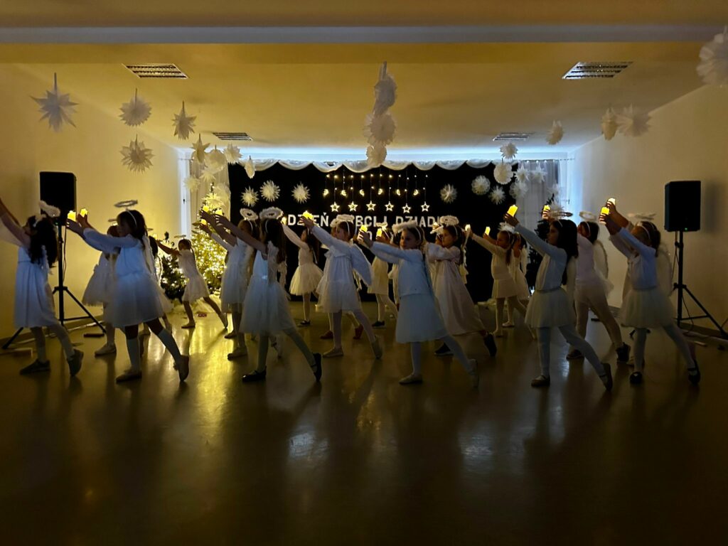 Na scenie pojawiły się aniołki i pasterze, tworząc niezwykły, niemal bajkowy klimat. Anioły zaprezentowały delikatny, poruszający taniec do utworu „Noel”, a pasterze wprowadzili energię i radość, tańcząc do piosenki „Górę gwiazda”. Występy dopełniły pięknie wykonane pastorałki, które wprowadziły wszystkich w zimowy nastrój.